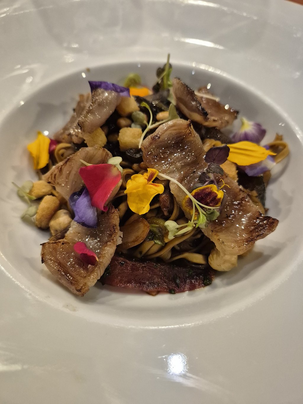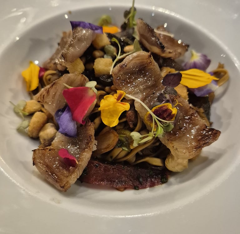 Wagyu Japonais A5 grillé, nouilles sautés au légumes, miel, soja, noisettes *