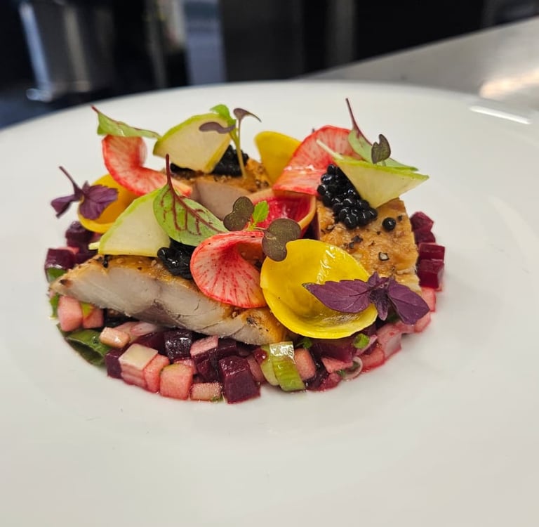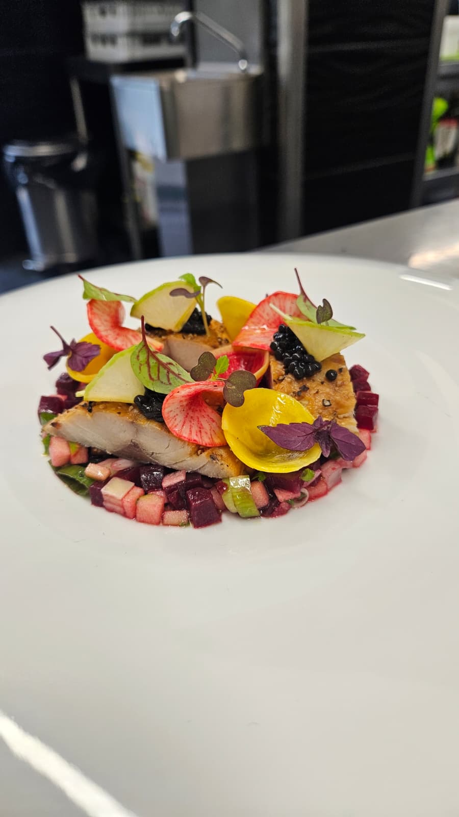 Filet de maquereaux fumé, salade de bettrave, yuzu et pomme granny *