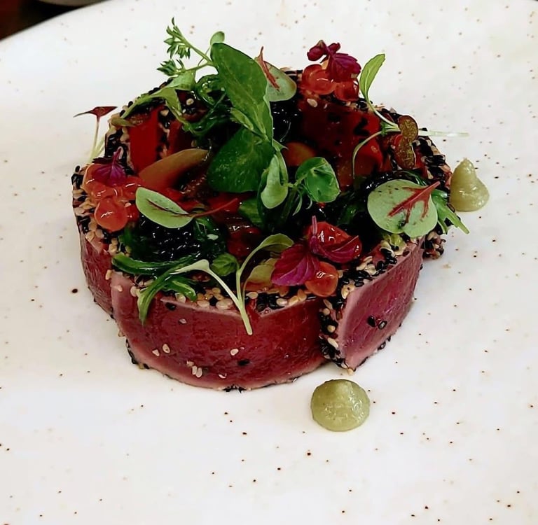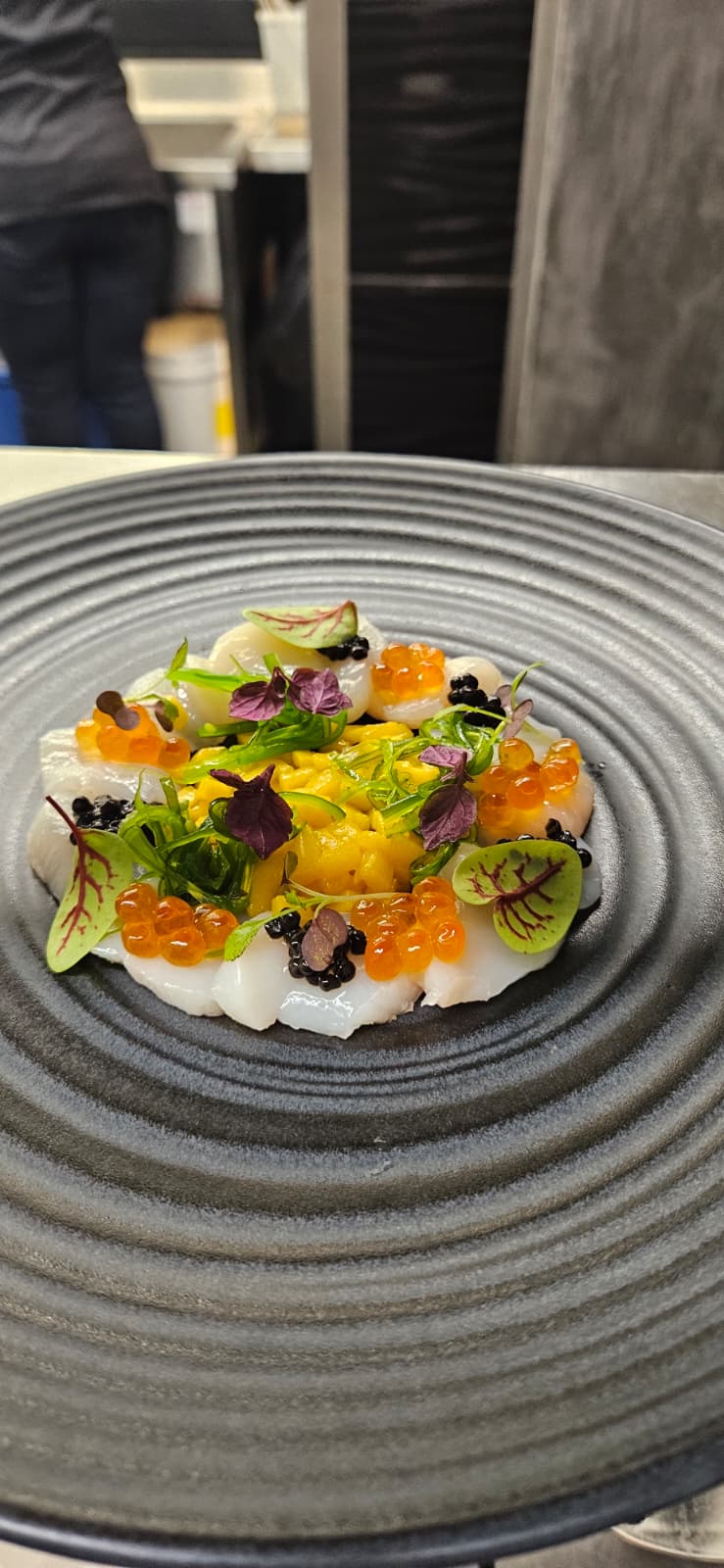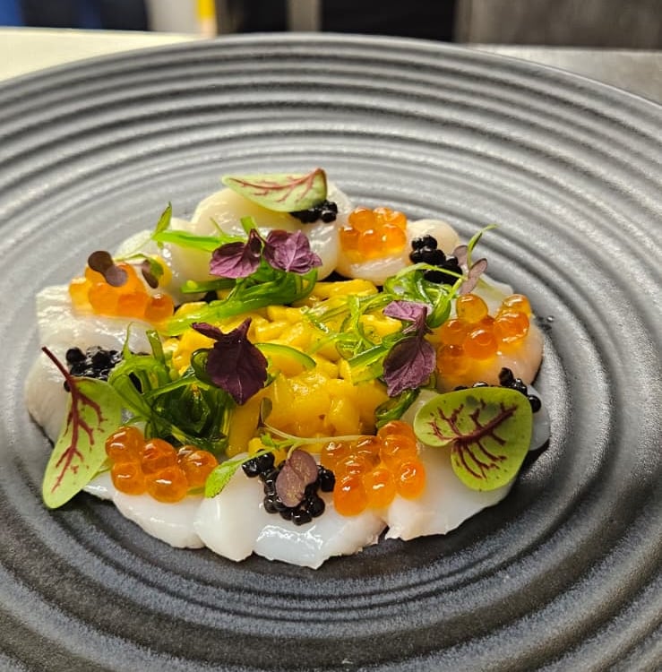 Carpaccio de Saint Jacques, mangue, passion, perles d’Avrugha *