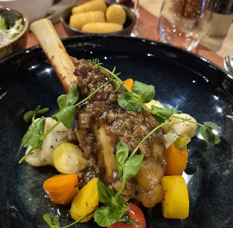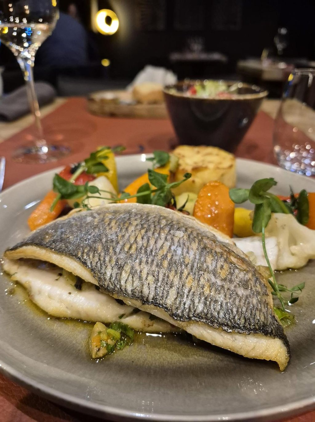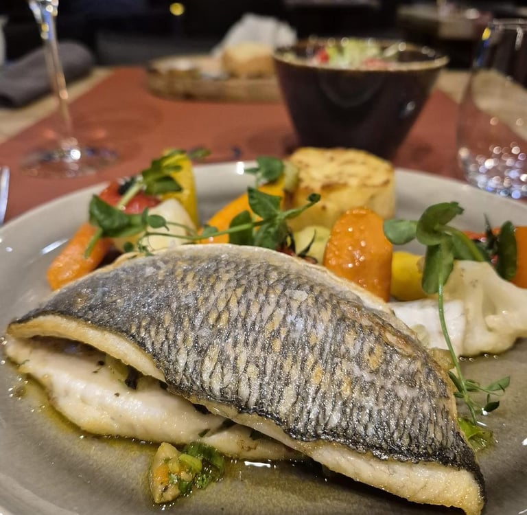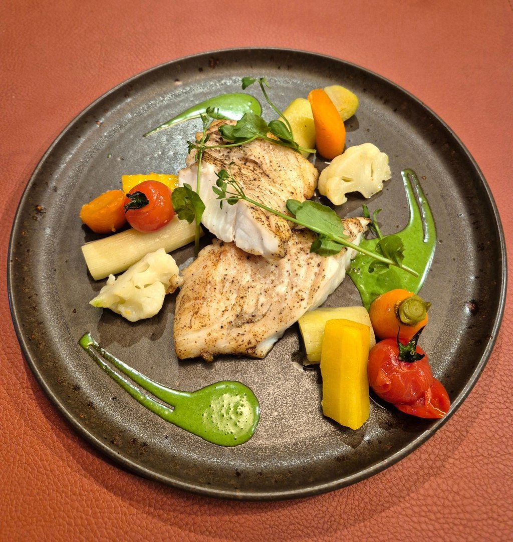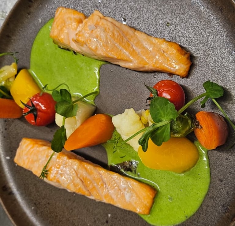 Pavé de saumon poêlé, sauce "Entre Sambre et Meuse", pommes dauphine, légumes de saison *